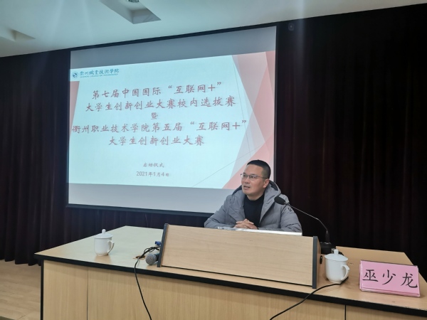 1月4日,第七届中国国际“互联网+”大学生创新创业大赛校内选拔赛暨衢州职业技术学院第五届“互联网+”大学生创新创业大赛启动仪式在图书馆三号报告厅隆重举行。副校长巫少龙、各二级学院创新创业教育平台负责人、创新创业基础课师资库全体教师、往届参赛项目团队师生等参加,启动仪式由创业学院院长黄恒荣主持启动仪式由创业学院院长黄恒荣主持。